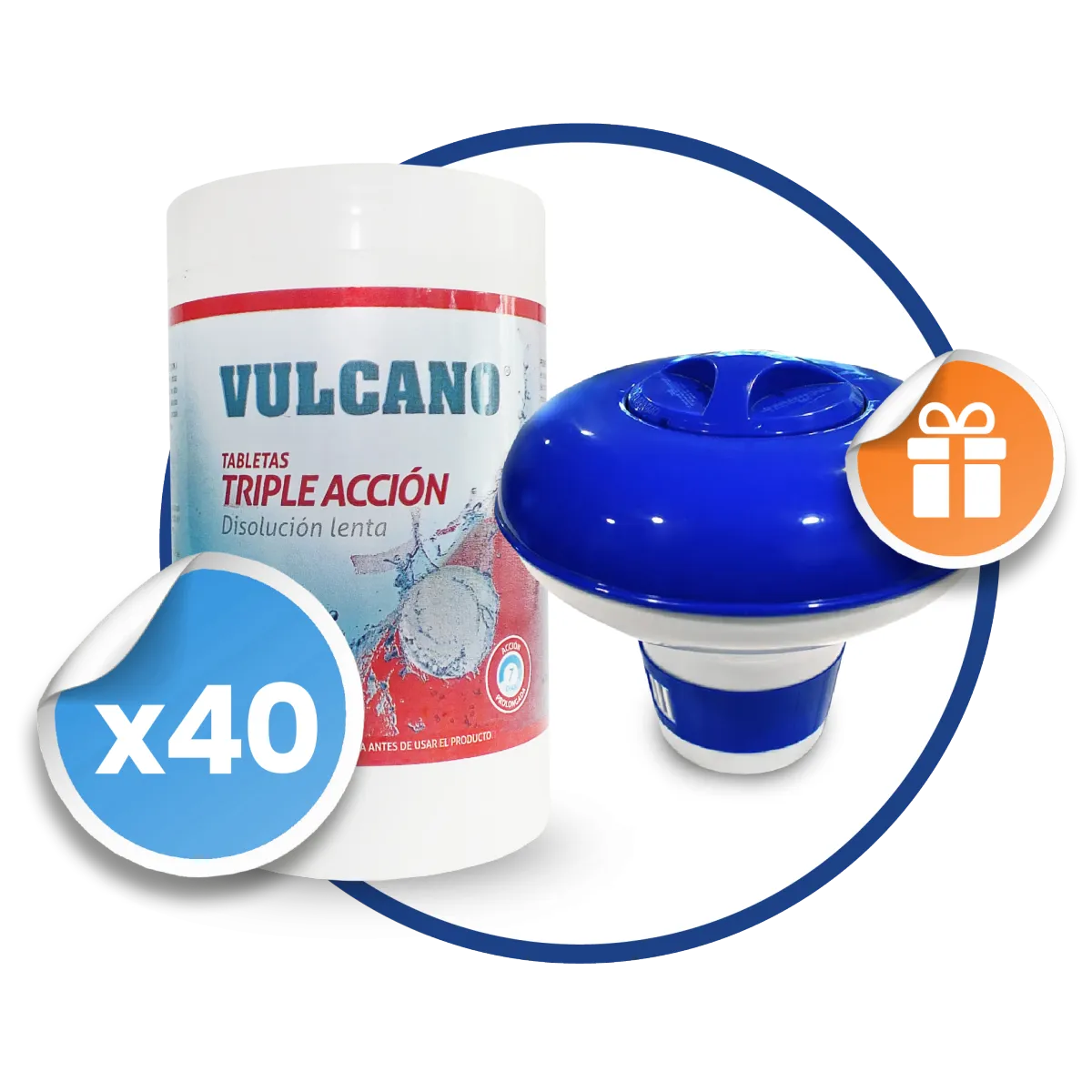 PACK 40 UND. CLORO TRIPLE ACCIÓN 1KG VULCANO #362201 + REGALO BOYA DOSIFICADORA VULCANO