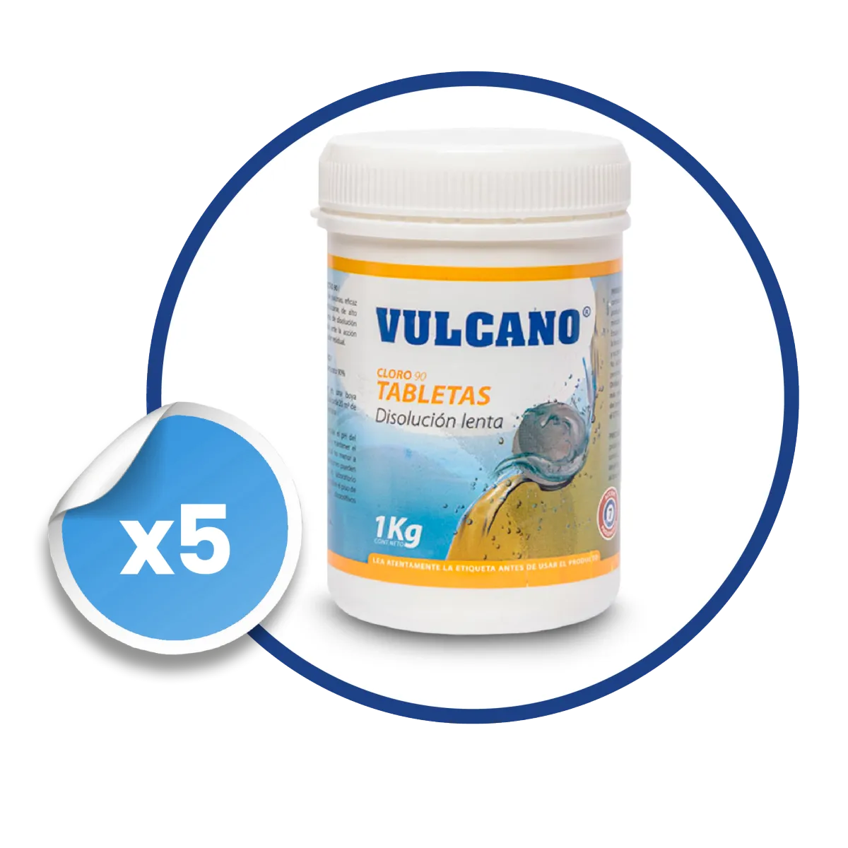 PACK 5 UND. CLORO TABLETAS 90% 1 KG VULCANO #362001