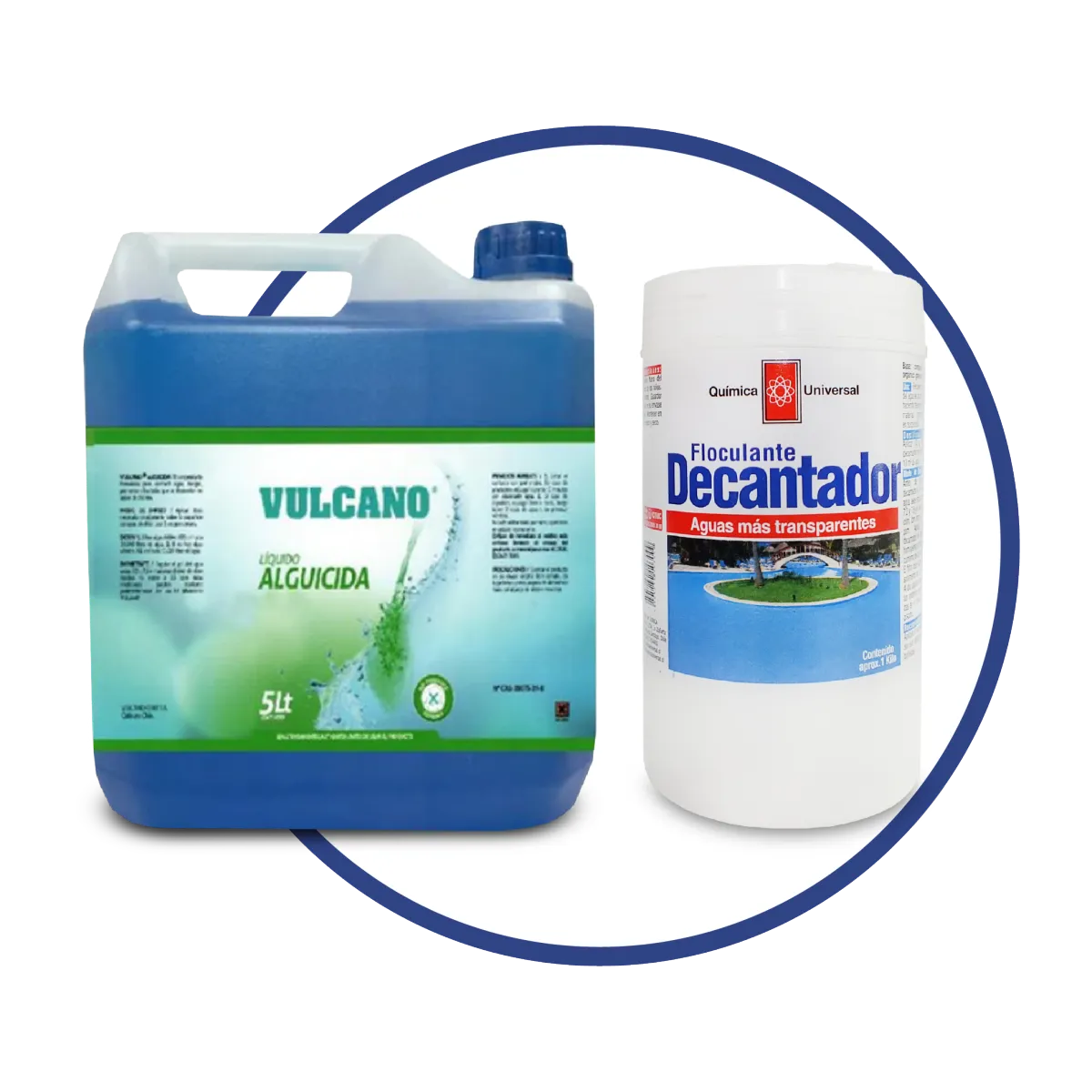 DECANTADOR 1KG QUÍMICA UNIVERSAL + ALGUICIDA 5LTS VULCANO.