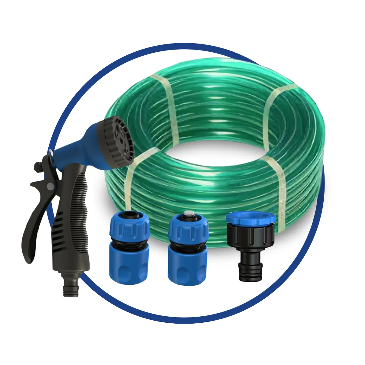 KIT JARDÍN MANGUERA 15 MTS. + PISTOLA C/ADAPTADORES